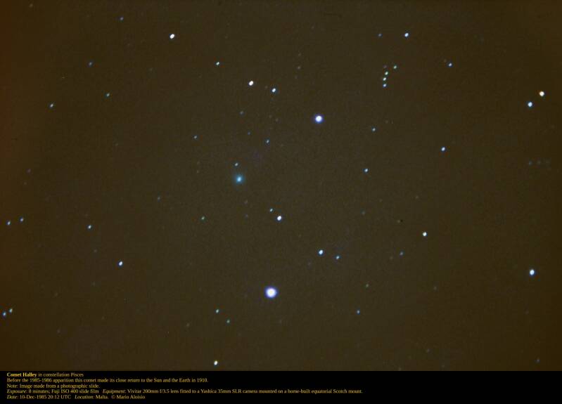 The first image shown here is that of Comet Halley in the constellation of Pisces.