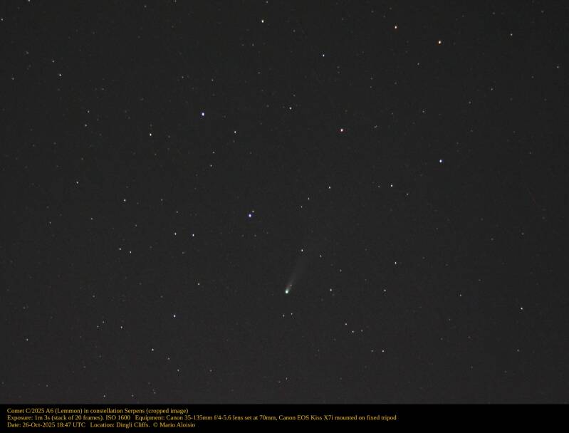 Comet C/2025 A6 (Lemmon) in constellation Serpens (cropped image)