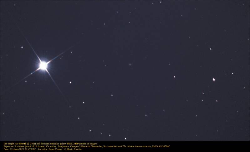 The bright star Merak (β UMa) and the faint lenticular galaxy NGC 3499 (centre of image)