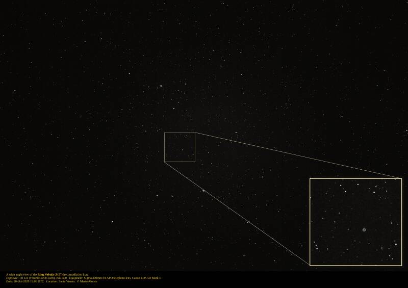 A wide angle view of the Ring Nebula (M57) in constellation Lyra